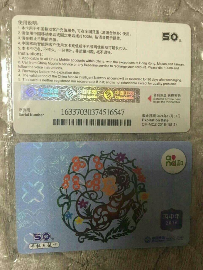手機充值卡的有效期包括卡本身的有效期(即在某個時間段此卡必須要充到手機上,否則過期作廢就充不進去了)