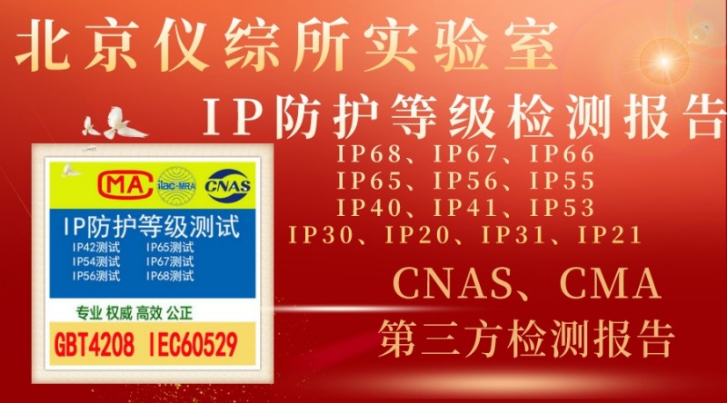 北京儀綜所檢測中心提供IP68水等級認(rèn)證,IP65防護(hù)等級測試服務(wù),提供國家認(rèn)可的第三方檢測報(bào)告,CNAS和CMA檢測報(bào)告。