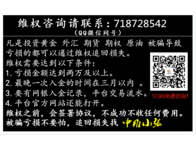 大多數投資人是不懂技術分析的,而你合作的都是平臺的代理商,他們獲取利潤的點就來自于投資人的本金消耗,這也是有兩種,其一是讓你頻繁的交易產生高額手續費,把你的本金消耗轉化成他們自己的傭金,其二操作讓你放大倉位,尋求一一次大行情給你一個反向單讓你本金大量消耗,而你虧損的正是進入他們的腰包。如果你遇到了不正規投資讓你虧損嚴重,不知所措的時候,請你盡快維護自身權益,找專業的團隊維權服務,不管你是哪些平臺,也不管你是何種情況,只要你需要幫助,我們這邊有專業經驗豐富的咨詢團隊,冷靜的尋找和收集好被騙證據,第一時間把問題反映給我們才能以最快的速度挽回大家的損失.我們是專業的公司專業維權顧問(微信zgw026),通過正規的合法途徑來維護投資人的基本權利,保護投資人的合法利益。在這里我們團隊向各位被黑平臺欺凌的投資人承諾,我們如果追損不成功,絕不以任何理由收取任何費用,追損資料嚴格打碼保密。