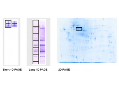 百泰派克生物科技可根據(jù)您的需求,提供基于1D SDS-PAGE或2D SDS-PAGE的蛋白分離服務(wù):基于我司優(yōu)化的標準操作流程,使用Bio-Rad Mini-PROTEAN® Tetra凝膠系統(tǒng)進行1D SDS-PAGE蛋白質(zhì)分離。將蛋白樣品(5-20ug)用上樣緩沖液稀釋到一定濃度并加熱(沸水浴5 min),根據(jù)樣品的分析目的選擇適當濃度的凝膠并將樣品上樣到凝膠孔中,加入電泳緩沖液,首先在80V電壓下恒壓分離15min,然后在120V電壓下恒壓分離60 min。分離后卸下膠板,將凝膠用考馬斯亮藍染色或銀染染色。