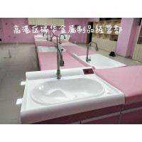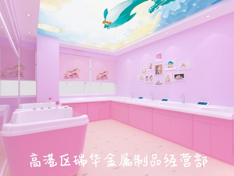嬰兒洗浴中心由嬰兒洗禮池,嬰兒游泳池,護理平臺,撫觸軟包臺,洗手池等組成。洗禮池和游泳池,洗手池,護理平臺,轉(zhuǎn)角平臺都采用面層為優(yōu)質(zhì)的A級PMMA高分子復(fù)合材料一體成型,表面細菌殘留量遠遠低于不銹鋼,人造石,陶瓷盆和其他普通塑料。嬰兒洗澡池底部圓滑突起設(shè)計;給嬰兒一防滑支撐點,防止嬰兒在池內(nèi)滑動,造成意外嗆水。